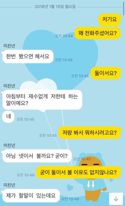 왠 여자한테 카톡이 오더니 뭔 이야길 하는거임