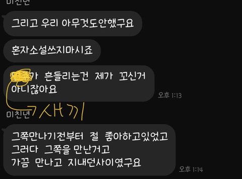 이외에는 그새끼가 다른 여자랑 살갑게 연락하고