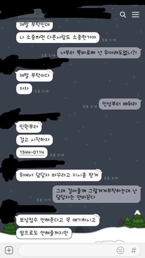 전 너무 화나서 ‘두고 보자 새끼야’ 하고 끊으니 저한테 카톡보내네요