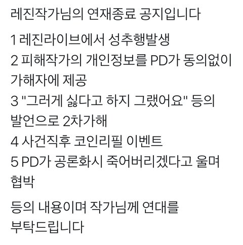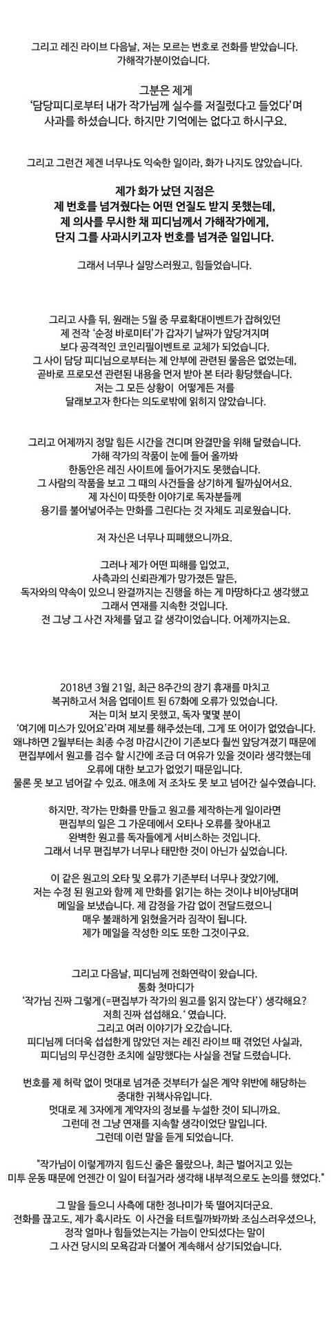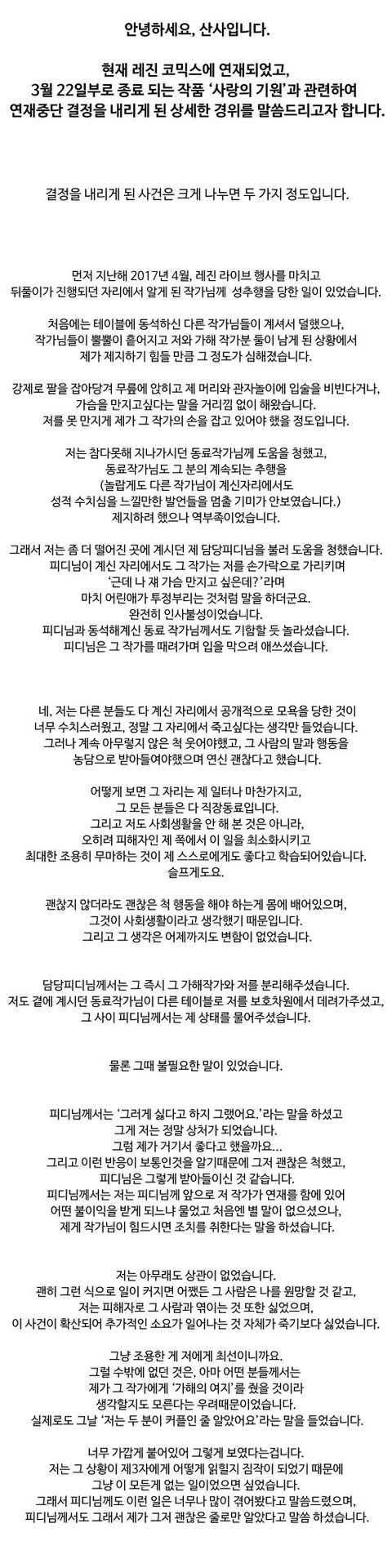 성추행피해자 정보를 가해자에게 넘긴 레진코믹스