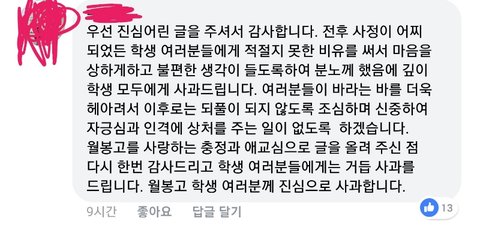 천안월봉고등학교 교장선생님의 진심어린 사과가 있기 전까지 계속 공론화를 위해 노력할 겁니다.