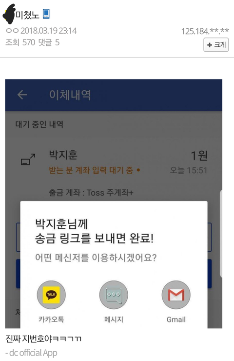 (증거) 박지훈 토스 송금 및 송금 취소
