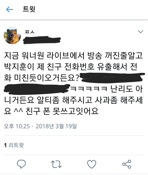 하지만 이들은 여기서 멈추지 않고 유출된 번호를 바탕으로 박지훈 개인 신상을 털기 시작하였음.