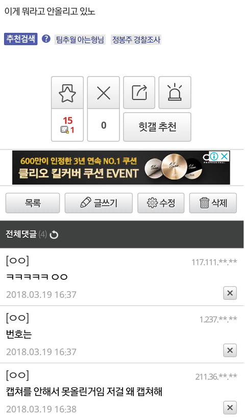 이후에도 안티들은 노출된 번호로 끊임없이 전화를 하였음.
