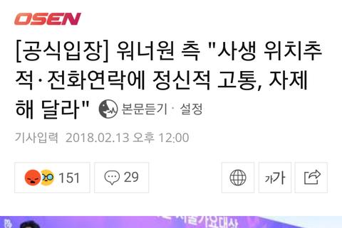 (증거1) 사생과 관련한 워너원 고통 기사