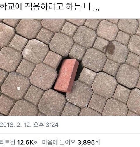 헐..사진 너무 맘아프다 다른애들은 다 똑같이 생겨서 붙어있는데 혼자만 다른 벽돌이잖아.. 내가 학교생활 하면서 느낀건데 꼭 삼월에 안친해져도 나중에 친해질 기회가 어떻게든 생기거든 그때 꼭 친해져봐 너무 나쁘게 생각하지마ㅠㅠ