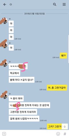 너무 어이가없는거야 일단 저 말투자체가 내말투가 아니거든 ㅋㅋㅋㅋㅋㅋㅋㅋㅋㅋㅋㅋㅋ예전도 지금도 저말투아니었고 프사가 3월2일 이후로 내가 지금까지 카톡프사가 저거였는데 저겄도 가져가서 그대로 싸고 후 .. 분명 이건 누가 만든 건데 s는 눈에보이니까 이걸믿더라고 ㅋㅋ 그리고 저 만든톡내용이 내가 본게 일부인가봐 내가 나랑같이다니는친구들 욕을 한것 (물론 진짜내가한게아니라 만든거) 를 나랑같이다니는 애들중 한사람한테보낸거야 근데 저 톡내용사진 보면 상단바가없고 옆에 살짝 하얀게 있거든 ? 그리고 43분에 주고받는 말이 너무 비정상적이게ㅜ많고 내말투도 아니고 나랑 페메도 자주하던 내 친구들은 이게 니말투 아닌건 확실하고 옆에 하얀거 있어서 좀 이상한거같다고 지금 애들 다 너 믿고있으니까 걱정말라했어 근데 지금 누가 날 저격해서 이런걸 만들었단 거잖아 누군지도 대충 알아 J가 옛날에 카스에 썰쓰고이랫을때 톡 내용만들기 앱을 썼었거든 J는 안드로이드오 난 아이폰 사용중인데 앱스토어에는 저 톡내용민들기앱이 없고 안드로이드에만 있어서 나는 이게 조작이라는 확실한 증거를 내가 확인도못하고 확인시켜주지도못해서 증명하지 못하잖아