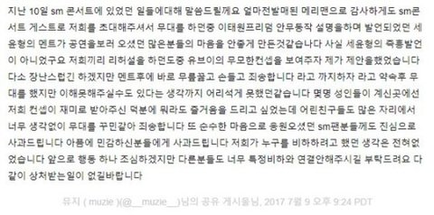 저번에 콘에서 병신이라고 했다고 욕 조카 쳐먹고 기사오르락내리락했잖아 밑에는 사과문