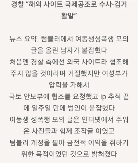 텀블러 여동생 성폭행 모의글’ 작성자 검거