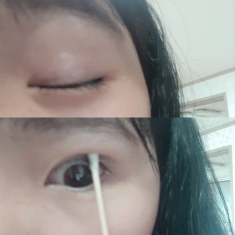 5쌍액을 점 점 점 이케 눈의 3분의2정도까지만 찍은뒤 반정도 말려주고 바로 눈을 부릅 뜸!! 뜬 상태에서 또 눈에 힘을뽝줌 여기서 막대나 면봉으로 누르면 안됌 눈을 떠주면 아까 그상태의 라인대로 똭 잡힘