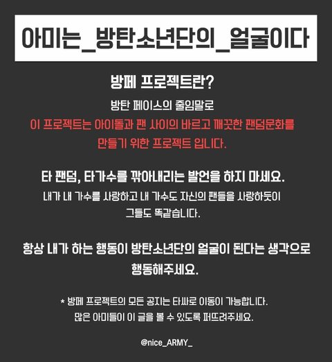 좋은 취지인듯!!!! 프로젝트 제발 대성공하자 어제 타팬덤한테 너무 미안해서,, ☆☆☆아미의 얼굴은 방탄☆☆☆