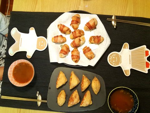 주말에 도시락 싸서 피크닉하기로 했는데 비가와서 집에서 그냥 베이컨주먹밥과 유부초밥으로 소풍기분 냈어요~~
