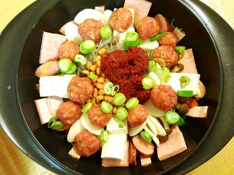 완자가득 넣어 사리부자로 먹은 부대찌개입니다. 맛은참있었는데 조금씩 재료사다보면 재료비땜에 2인은 사먹는게 좋은듯합니다^^; 육수넣기전 찰칵~~
