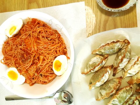 도시어부보다 출출해져서 그야밤에 김치말이국수와 군만두를 먹으며 맥주도한잔. 국수양조절실패 인정각의 어마무시한 양였습니다. 파스타나 국수나 양조절이 어려워요..^^;;