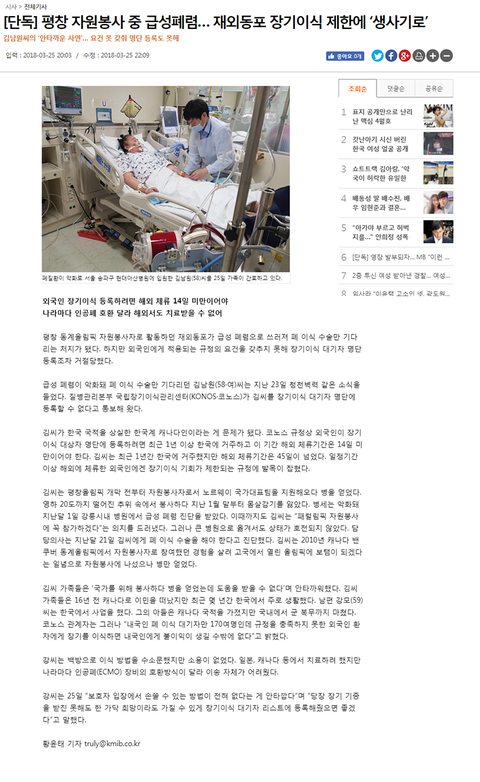 규정상 외국인은 장기이식 대상자 명단에 등록하려면 최근 1년 이상 한국에 거주하고 이 기간 해외 체류기간은 14일 미만이어야 한다고 합니다.