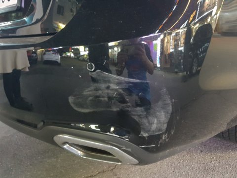 순찰차가 엄마차 뒷범퍼를 긁어놨더래요..