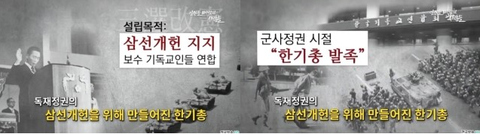 거기서 파생한 한기총은 쿠데타 정권의 유신헌법 지지운동도 했습니다.
