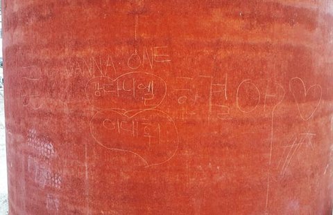 부산 해운대구 우동 부산시립미술관 측은 “야외 전시장인 ‘이우환 공간’에 설치된 조각이 낙서와 발자국으로 얼룩진 사실을 뒤늦게 발견해 최근 경찰에 신고했다”고 26일 밝혔다. 지난 1월 말 낙서를 발견한 부산시립미술관 측은 작품을 긴급복원했다고 한다. 훼손된 작품은 이우환 작가의 ‘관계항-길 모퉁이’로, 누군가에 의해 작품 표면에 날카로운 물체로 긁어놓은 듯 ‘WANNA ONE’ ‘강다니엘’ 등 아이돌 이름과 하트 모양이 새겨져 발견됐다. 낙서 아래쪽에는 흙 묻은 신발 자국도 보였다. 작품이 있는 전시장은 야외공원과 같은 곳으로, 누구나 쉽게 접근할 수 있다.