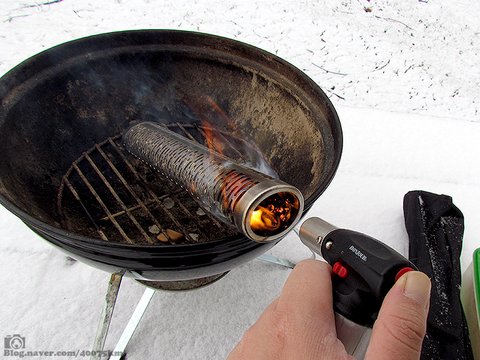 저온 훈제를 할 것이 아니라면 굳이 펠렛 스모커까지 장만할 필요 없이, 그냥 바베큐용 목탄 하나 불 붙여서 사과나무 토막 하나 올려놓으면 연기 풀풀 나면서 훈제를 할 수 있습니다.
