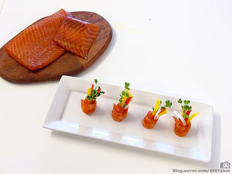 그냥 막 집어먹어도 맛있지만, 이왕 먹는 것 연어말이를 만들어서 맛을 봅니다.