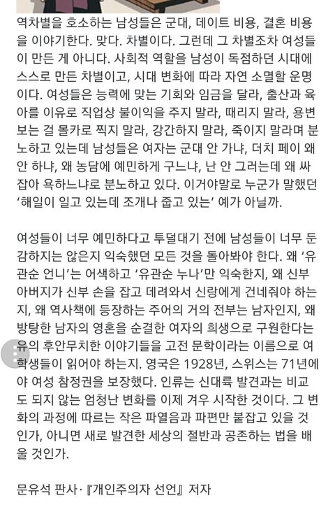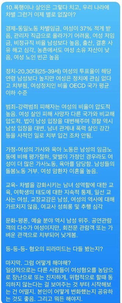 이 글을 보고 페미니즘을 무조건 비판하는 사람들이 약간이라도 생각이 바뀌었으면 좋겠어...