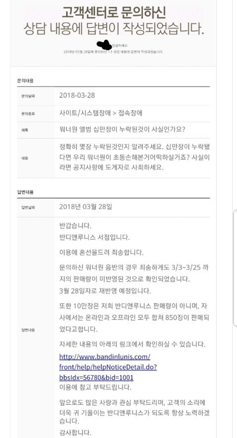 이번에 사재기 논란 반디에서 10만장 누락인 줄 알았는데 반디에서는 850장만 누락이래