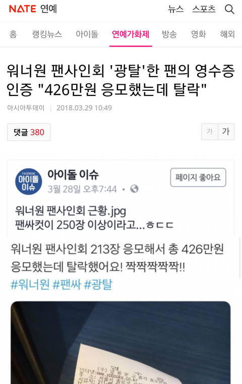수백쓰고 팬싸 광탈했다는 기사가 뜸 ㅋㅋㅋㅋㅋㅋㅋ