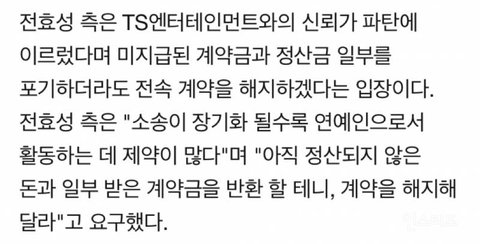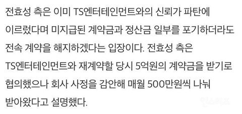 / 2015년 재계약 당시 전효성이 원래 받아야했던 돈 ‘5억’을 소속사는 회사 사정이 어렵다고 주질 못해서 매달 5백만원씩 찔끔찔끔 줌.