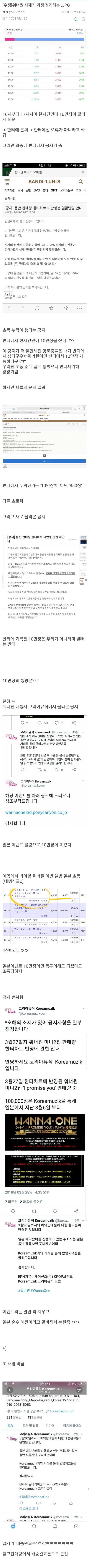 ++더욱 의심되는건 코리아 뮤직이 mnet, cj계열사 라는거임. 이렇게되면 결론은 엠넷 소속 유통업체(코리아 뮤직)가 10만장을 일본에 가져가서 판매되지도 않은 앨범을 다 판매됐다고 허위로 한터에 전달해 10만장이 찍혔다고 볼수있음. 이걸 해명하려면 일본 구매자들이 10만장을 다 구매했다는걸 입증해야 의문이 풀릴듯