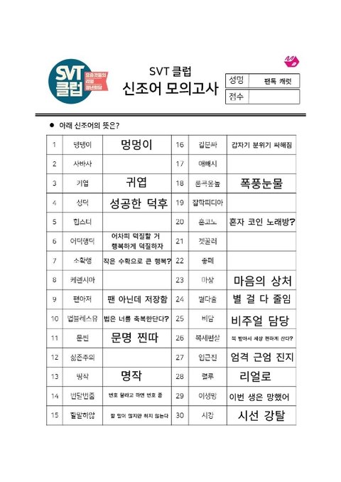 나 풀어봤는데 엄청 어려워ㅋㅋㅋㅋ 그냥 추측한 건 뒤에 ?랑 붙여놨거든. 확실히 아는 건 반정도인듯! 나머지 아는 캐럿 있어? 심심한데 같이 풀자