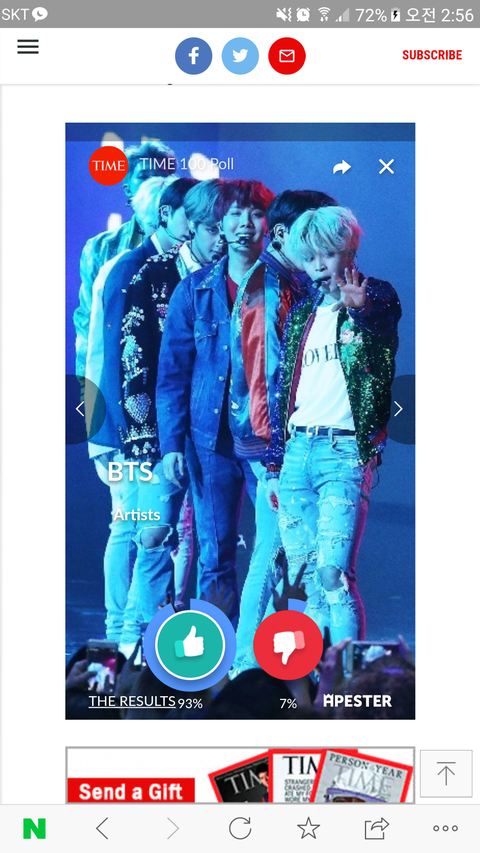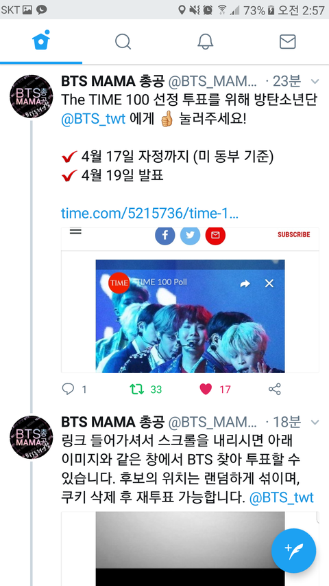 2018 TIME 100 선정 후보인 방탄소년단 투표 부탁해~!!