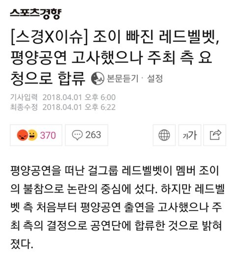 조이가 스케줄이 안 될 것 같고 문제있을 것 같으면 이건 국가적 행사니까 안된다고 했어야 하는데 오케이 한거지...지금 모든 화살은 조이한테 향하고 있는데 에스엠이 위유 제작진이랑 협상을 하든 뭘 하든 해야지...
