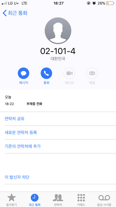 부재중 전화오는건 몇분인지는 모르겠는데