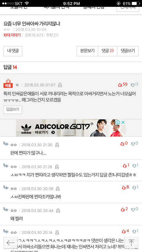 ㅅㅂ 레알 죶찐따인가 ㅈㄴ 살다살다 저런걸로 기분나빠하는년처음봄 ㅋㅋㅋ