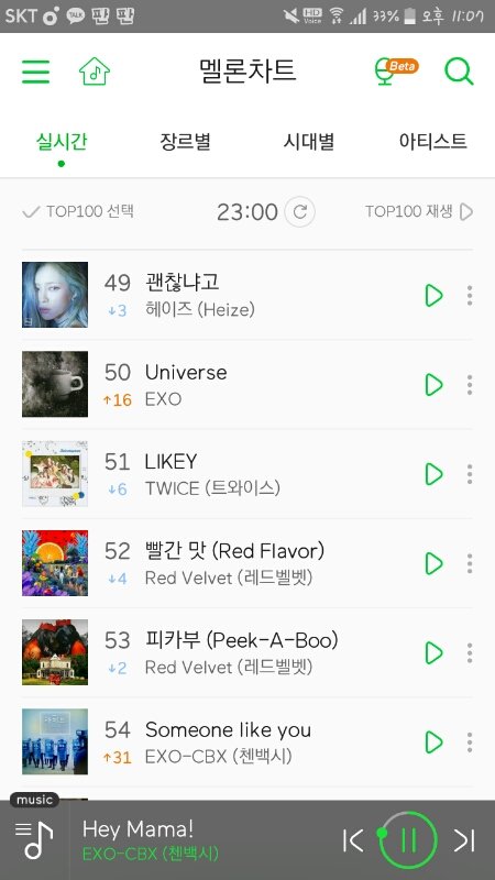 11시 차트 많이 오름