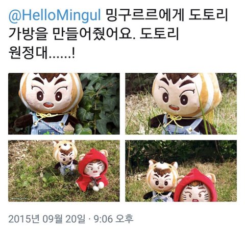 어느날 갑자기 2015년부터 도토리가방을 썼다는 원조 밍구리가 나타나 시우민은 깜짝 놀라 당황했어요