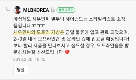 당당하게 도토리가방 모델로 활동하며 엠엘비 도토리가방 판매왕에 등극했답니다