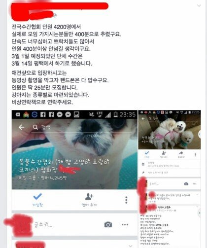 전혀 연관없는 댓글이지만 여러분의 힘이 필요해서 글을 올립니다. 여러분의 도움이 필요해요 부탁드립니다. 3월 14일 전국수간협회라는 넘들이 페북으로 25명 모집해서 애견샵에서 개들 상대로 강간했다고 합니다. https://www1.president.go.kr/petitions/163555 청와대 청원 올라와있어요 제발 도와주세요 제가 능력도 없고 할수 있는게 이것밖에 없어요 도와주세요 지금 이순간에 고통 받고 있는 강아지들이 있어요 https://www1.president.go.kr/petitions/163555 주변에 많이들 알려주시고 동참 요청 부탁드립니다. 매일 이런글 올려 죄송한 마음뿐이지만 염치 없게 또 부탁드립니다