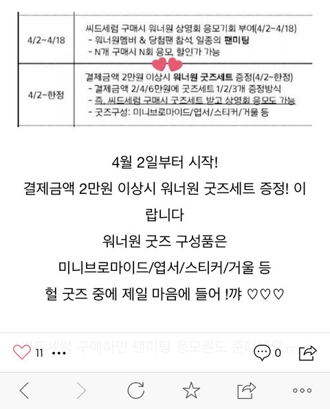 굿즈4개 8만원에 씨드는 하나당 1개 응모라면