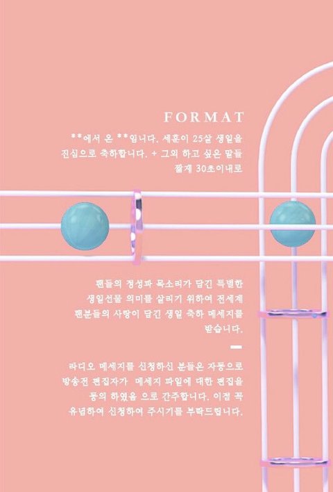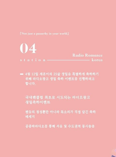 세훈이에게 보내는 축하메세지 광고 4.1~ KBS 이홍기의 Kiss The Radio를 통해 방송 22:05, 22:5. 23:00, 23:55 좌우로 방송될 예정
