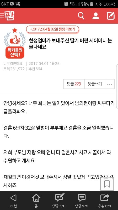 남동충네는 맞벌인데도 맨날 돈에 하덕이는데 자기는 그러고도 돈이 남아서 모부 포함 다른 사람들은 자기가 돈 되게 잘 모으고 무슨 어디다 돈 꿍쳐놓은 줄 알정도라고 함.
