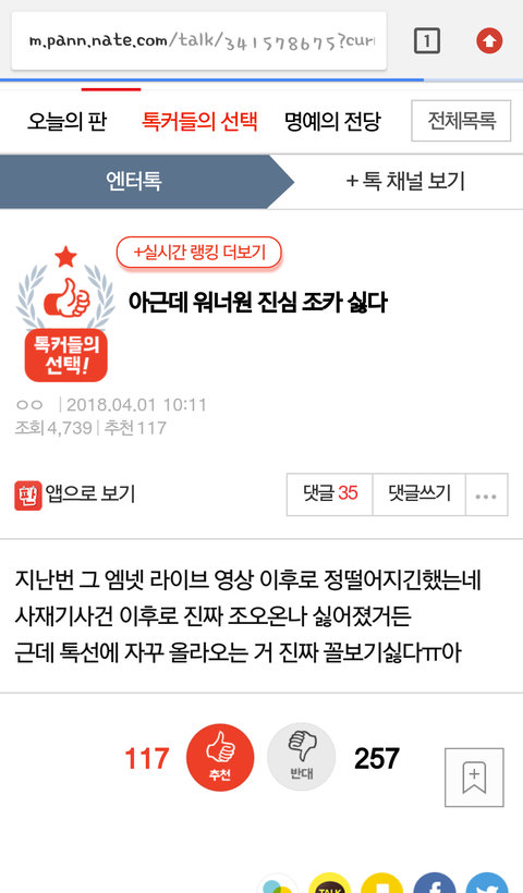 모모랜드가 심하게 까인게 진짜 잘못된거지 걔네 까였으니 워너원도 까여야한다는게 도대체 뭔 논리임 애초에 둘 다 소속사가 까이는게 맞는건데ㅇㅇ