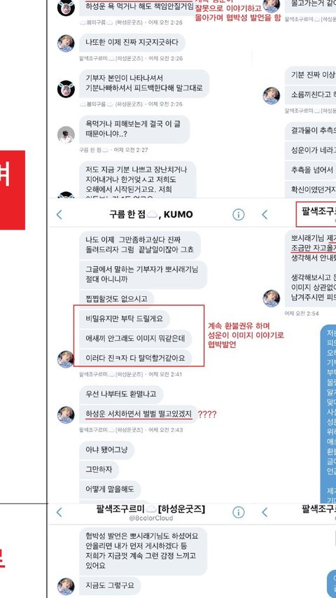 4-2. 여기서 총대들은 [애새끼 안그래도 이미지 뭐같은데 진짜 탈덕할거같아요], [하성운 서치하면서 벌벌 떨고있겠지?], [(기부자가) 하라는대로 할텐데 뒷일은 하성운 몫이지 뭐] 등 아티스트를 비방하는 말을 함