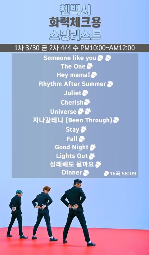 첸백시 화력체크용인데 첸백시곡은 7개뿐