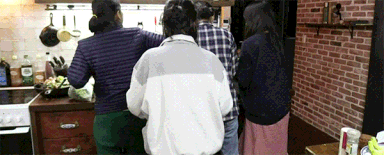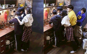 알바가 설거지하려는데 손님들이 자기가 하겟다고 막고잇는 상황임