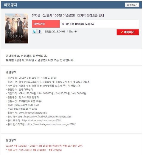 4/10 삼총사 마지막 티켓팅