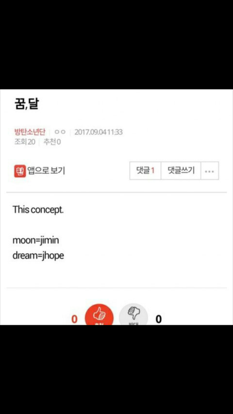 그때 이거보고 잉 이거뭔 소리지 하면서 어영부영 넘어갔었는데 지금 보면 지민이는 세린디피티 즉 달이고 제이홉은 이번 믹스테입 주제 즉 꿈 (백일몽이 이번 믹테 제목) 아닌가 싶다...