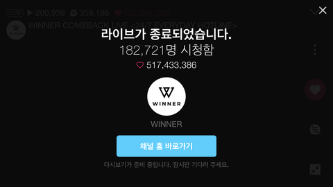 위너 브이앱 하트 5억 돌파