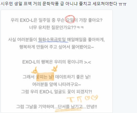 시우민 생일프엑 시험에 나올듯 ㅋㅋㅋ
