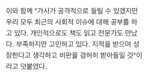 그리고 이건 봄날 컴백 당시 수록곡 Not Today 가사 내용에 대해서 제기된 여성혐오 지적에 대한 피드백이고 (기자회견)
